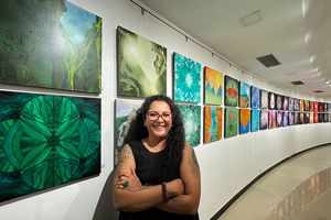 Karlette Joseph abstract artist hailing from Mumbai displaying her unique one of a kind Esoteric Abstract Art at Jehangir Art Gallery