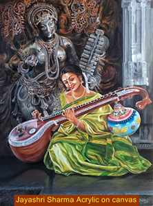 Microbiologist, professor and self-taught artist, Jayashri Sharma lights up her canvases with delightfully moving figurative pieces that carry softness of the divine feminine in her works. Female figurative paintings have a rich history and continue to be a dynamic and evolving genre within the art world. Jayashri’s works aims to celebrate the diversity, complexity, and resilience of women through the lens of art. It invites viewers to engage with these paintings and consider the role of art in shaping and reflecting our perceptions of gender and identity. Through these artworks, we are reminded that the female figure is not merely a subject for art but a source of inspiration, strength, and empowerment. In addition, her use of nature as a focus in her paintings is noticeable and her strength lies in the painting’s ability to capture the beauty, complexity and interconnectedness of the natural world and the human form.
