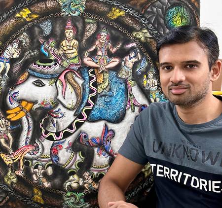 Aurangabad-based artist Sarang Hundiwala presents a captivating blend of history, spirituality, and artistry in his intricately decorative works. Drawing from a rich array of influences ranging from Indian Miniature art traditions, doodling Zen tangles to Buddhist art influences, mythological frescoes, and traditional Indian sculpture—Sarang’s creations reflect the essence of a realm steeped in cultural heritage and artistic inspiration.