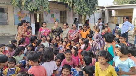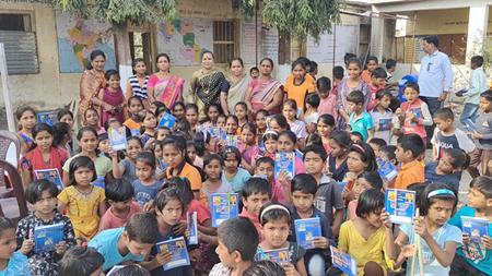 Understanding that education is the foundation of social progress, Sanghamitra Tai distributed notebooks, books, pens, slates, and other educational materials to needy students across Maharashtra. This initiative aimed to support children in their academic journey and provide them with essential resources.