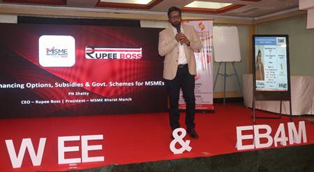 Keynote Session on “SME growth through debt” was conducted by Mr. PN SHETTY, CEO of Rupeeboss Financial Services Pvt Ltd and President, MSME Bharat Manch who explained about available Govt subsidies & CGTSME loan.