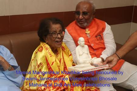 इसी दौरान अक्कलकोट के स्वामी जंजमेयराजे विजयसिंहराजे भोसले महाराज ने विनम्रता से कहा —“आज यहां उपस्थित होना मेरे लिए आशीर्वाद के समान है। मंगेशकर जैसे महान परिवार का स्नेह और आशीर्वाद प्राप्त करना मेरे लिए सम्मान है।”उनके यह शब्द आशीर्वाद नहीं, विनम्रता से झुका हुआ मस्तक थे।